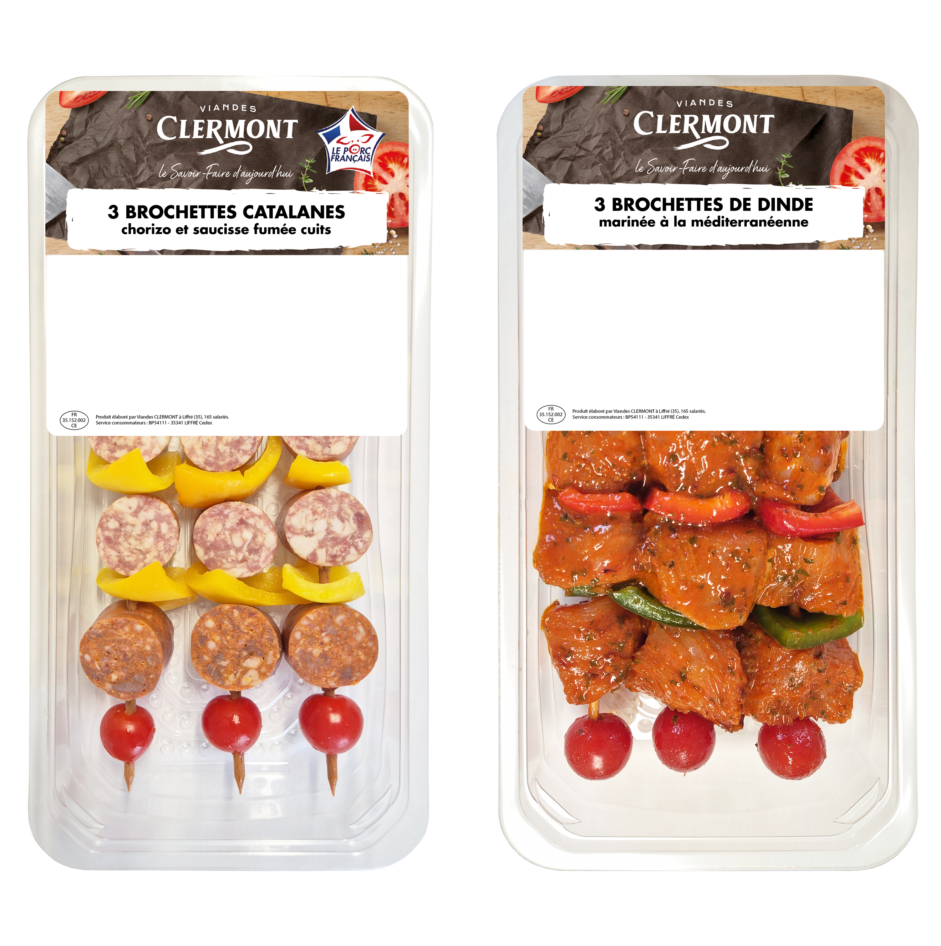 Depuis 1965, Viandes Clermont élabore ses brochettes avec un soin particulier : viandes d’origine France coupées et embrochées à la main dans nos ateliers de Liffré (35), marinades maison, légumes et fruits frais préparés en interne.